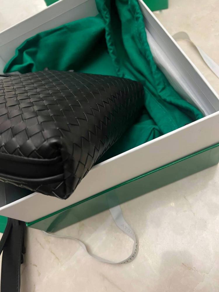 Botte Veneta Black Intrecciato Leather Double Zip Nodini Crossbody Bag