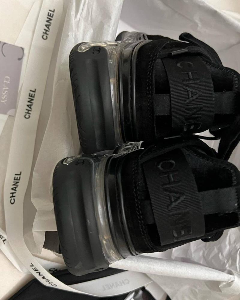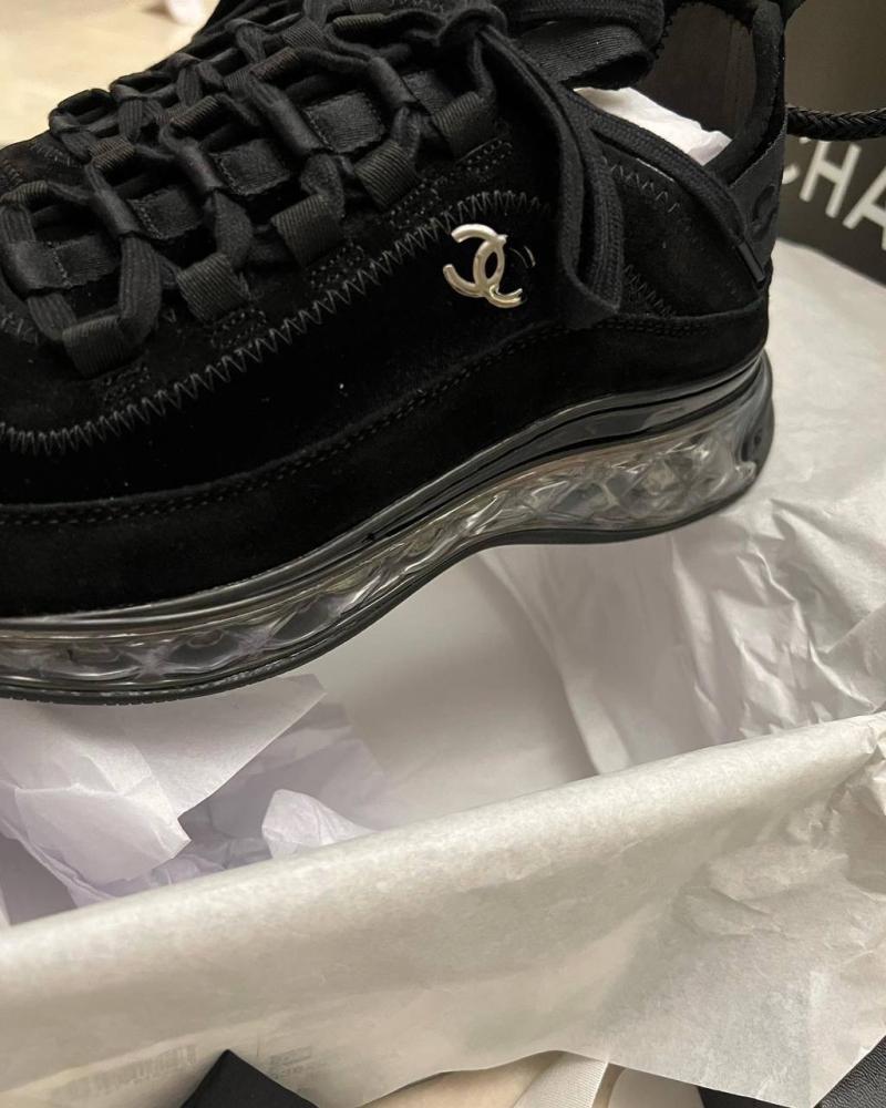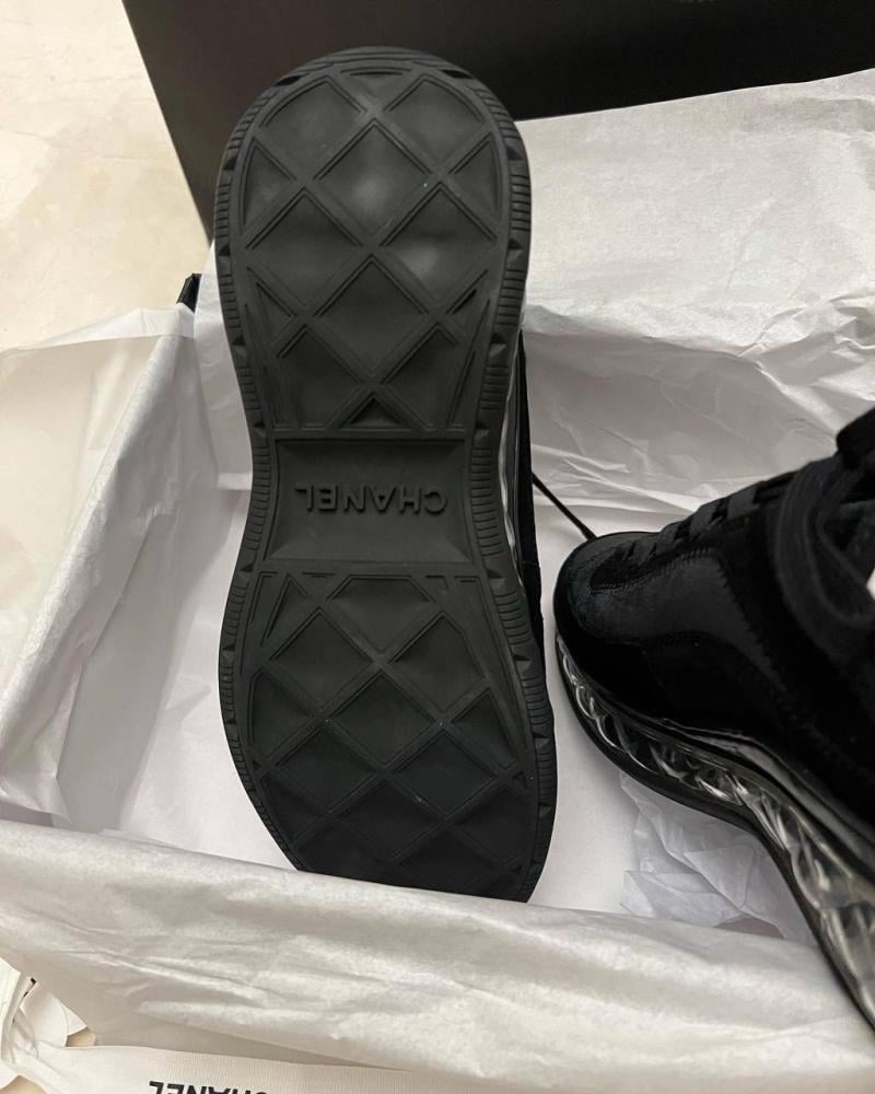 Chanel Black Wmns Calfskin and Nylon Sneaker