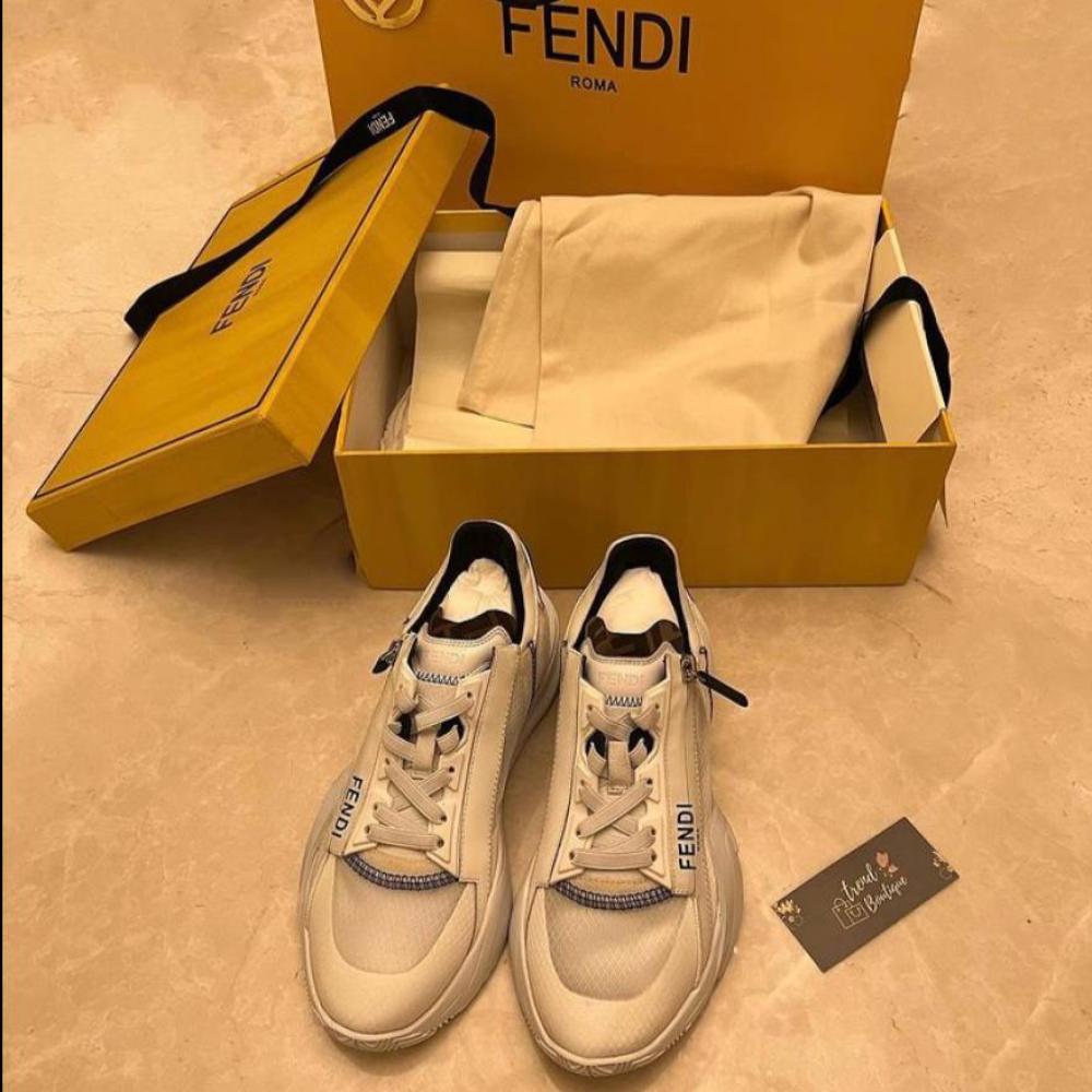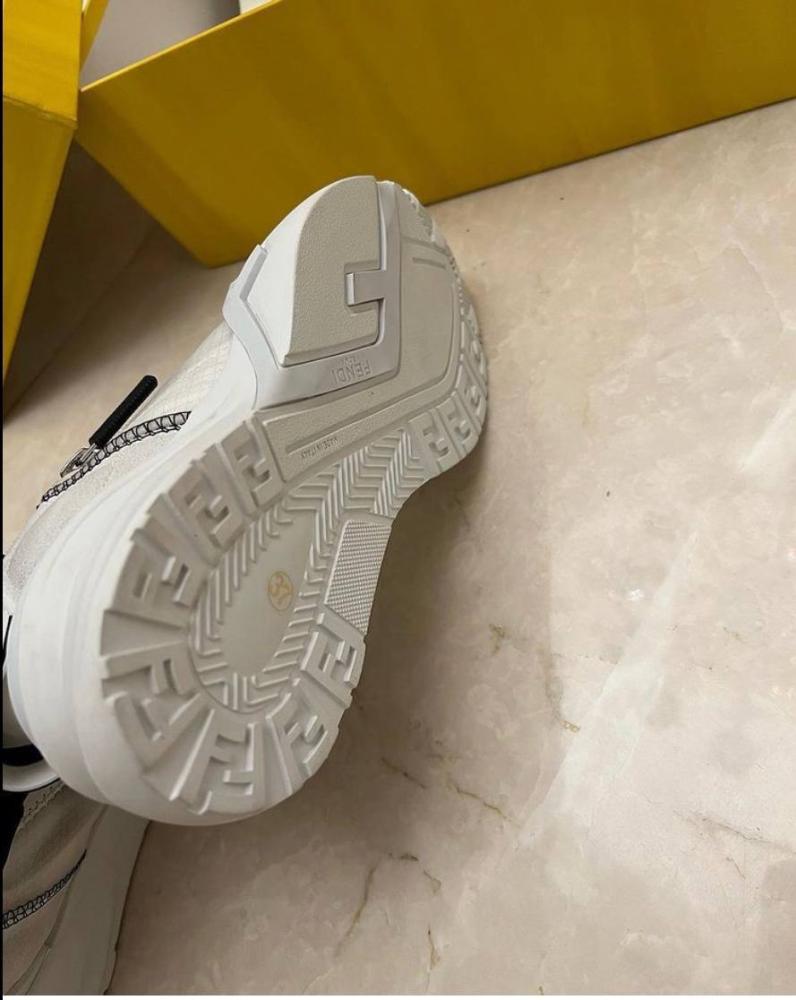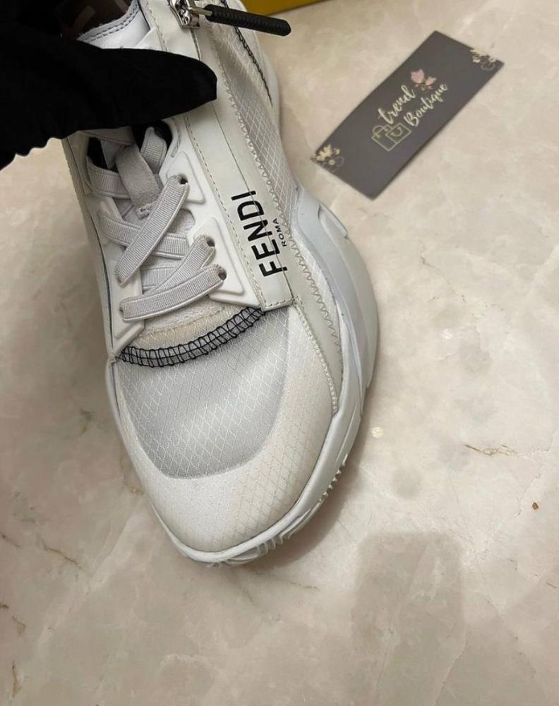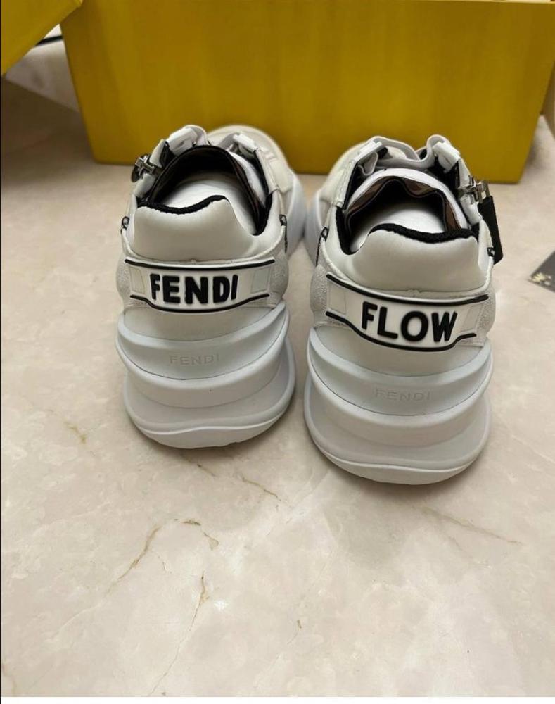 Fendi White/Grey Leather and Mesh Flow Low Top Sneakers