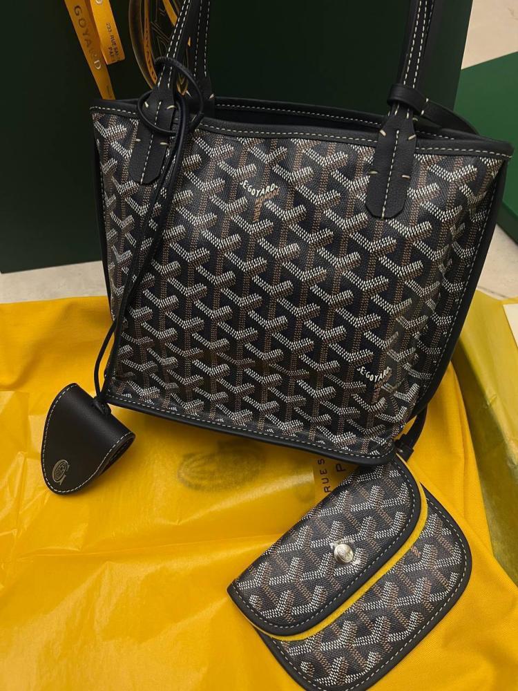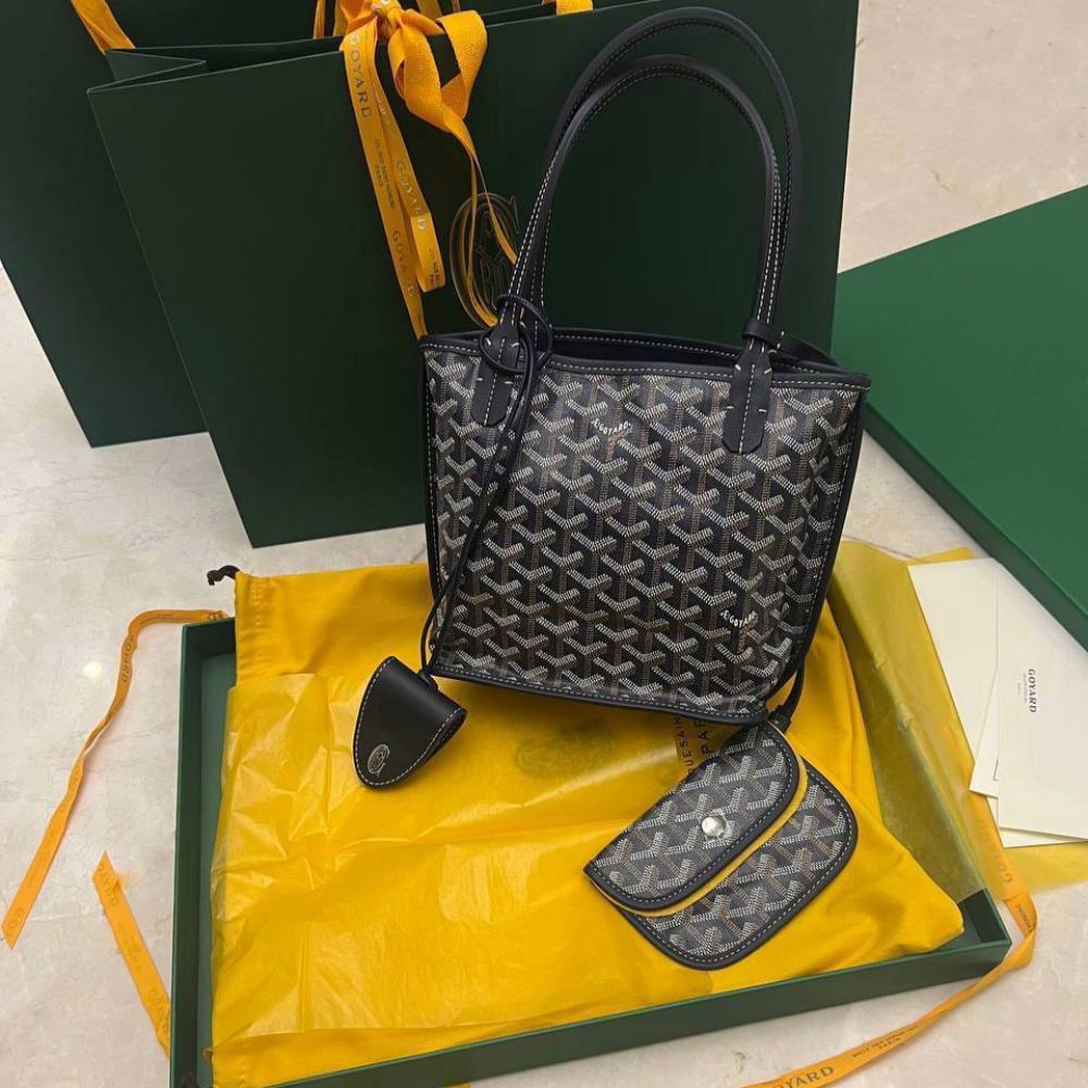 Goyard Black Goyardine Coated Canvas Mini Reversible Anjou Tote