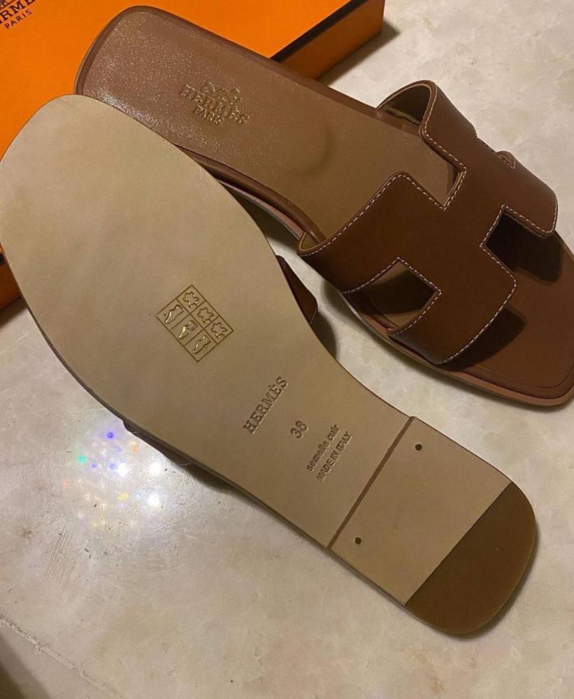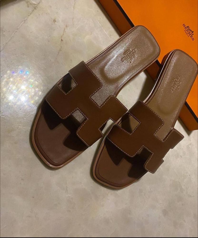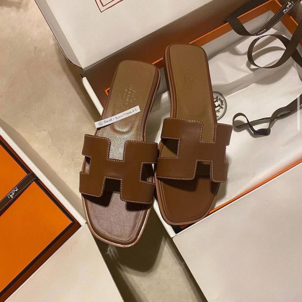 Hermes women's summer flat slipper, luxurious brown color