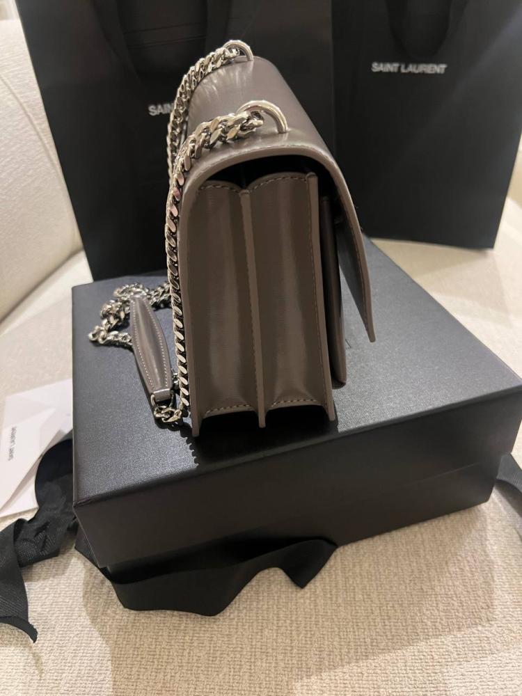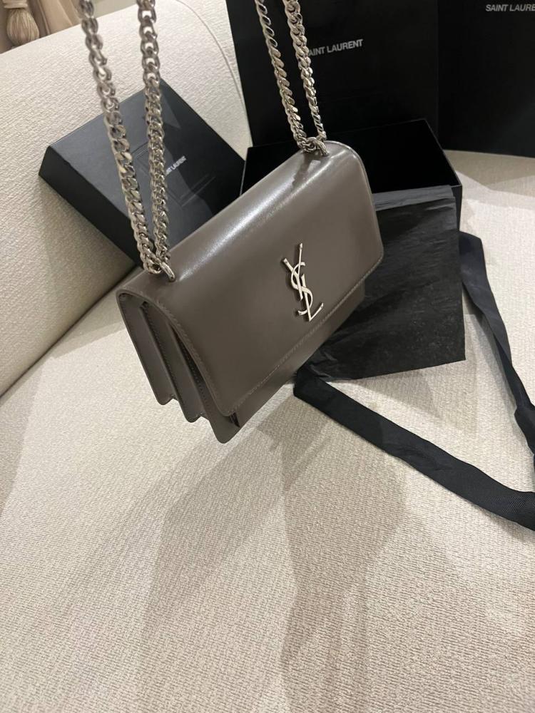 YSL Grey Leather Medium Sunset Shoulder Bag